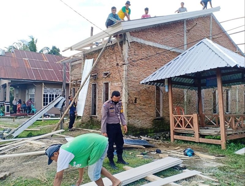 Seperti halnya Bhabinkamtibmas Desa Saukang, Kecamatan Sinjai Timur, Polsek Sinjai Timur, Polres Sinjai, Bripka Sudirman yang membantu warganya membangun dan mengatapi rumah batu permanen milik warga desa binaan, Minggu (12/07/2020).