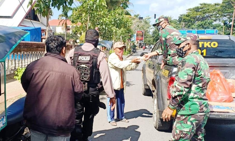 Petugas Posko Dapur Umum TNI-Polri dari Polres Gowa dan Kodim 1409 Gowa terus berbagi kepada warga prasejahtera ditengah pandemi Covid-19.