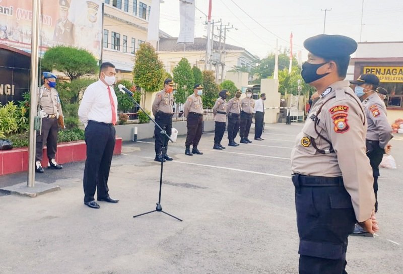 Kasat Narkoba Polres Gowa AKP Maulud, SH memimpin Apel pagi di halaman Mapolres Gowa. Kegiatan apel pagi ini diikuti oleh para Kabag, Kasat, Kasi, para perwira dan seluruh personel Polres Gowa, Rabu (15/07/2020).