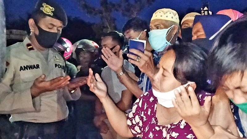 Bahkan Kapolsek Somba Opu Kompol Jamaluddin dengan menggunakan pengeras suara menekankan kepada warga tidak diperkenankan memasuki area pemakaman.