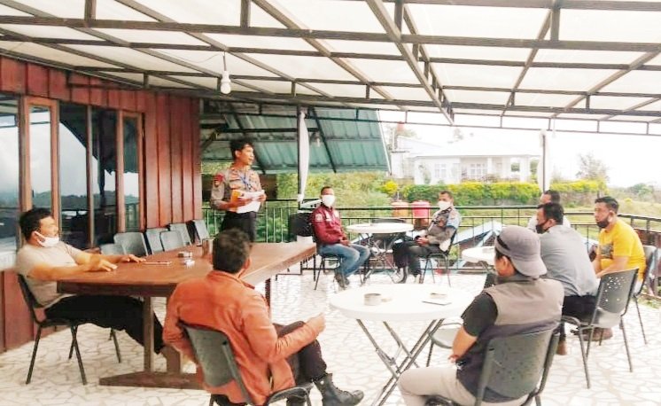 Kapolsek Tinggimoncong Polres Gowa Iptu Hasan Fadhlyh, SH mengumpulkan para Kasi dan Kanit jajaran Polsek Tinggimoncong di salah satu objek wisata yang ada diwilayah binaannya, Sabtu (18/07/2020).