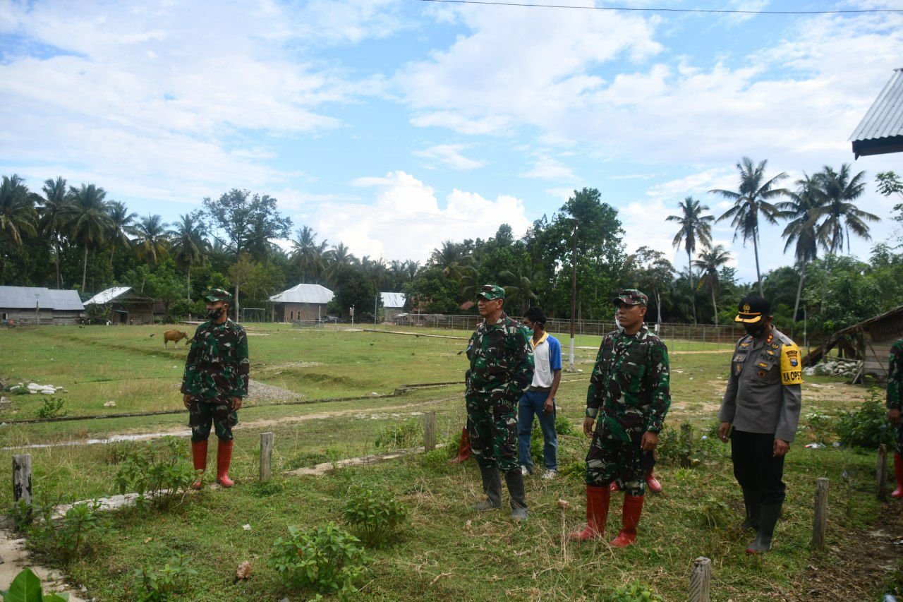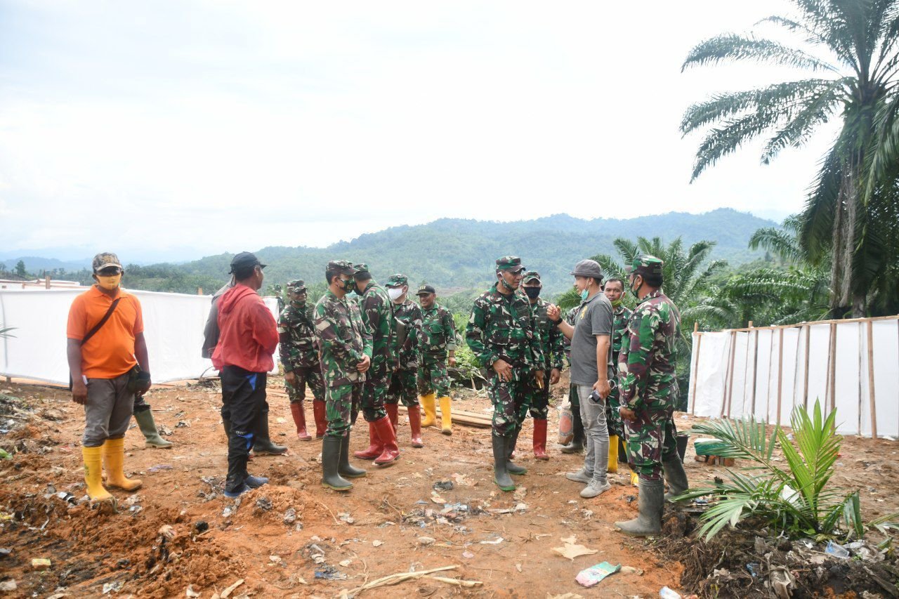 Danrem 142/Tatag Brigjen TNI Firman Dahlan, S.I.P didampingi Dandim 1403/Sawerigading, Kasi Ter Korem 142/Tatag, Kapolres Luwu Utara (Lutra) dan Ketua DPRD Lutra, Drs. Basir meninjau kesiapan lahan rencana pembangunan 400 hunian sementara untuk korban banjir bandang di Desa Radda dan Desa Meli, Kecamatan Baebunta, Sabtu (18/7/2020).