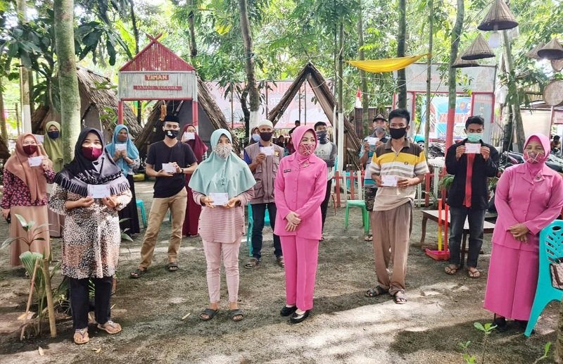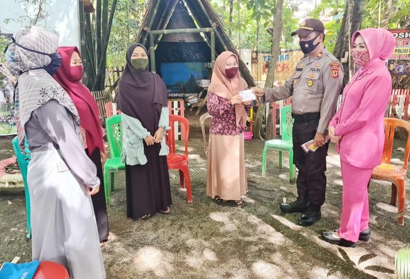 Ketua Bhayangkari Ranting Pallangga Cabang Gowa didampingi Kapolsek Pallangga Iptu Nasruddin, SH, MH membagikan vitamin kepada warga di Kampung Rewako. Terlihat Kapolsek dan Ketua Bhayangkari Ranting Pallangga Polres Gowa sedang membagi-bagikan vitamin kepada warganya, Sabtu (18/07/2020) sore.