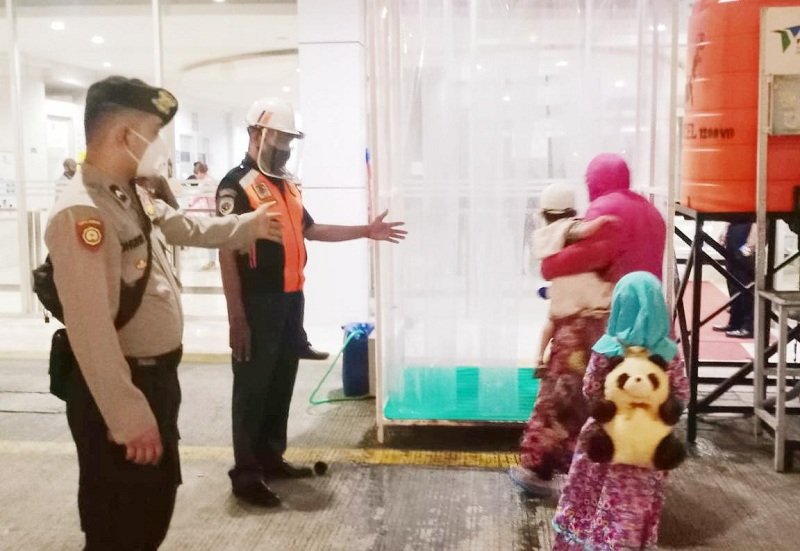 Mendukung program pemerintah dalam menekan penyebaran Covid-19 di tempat fasilitas umum seperti stasiun, terminal, dan pelabuhan, Polsek Kawasan Soekarno Hatta (Soeta) memberikan pengamanan dan edukasi protokol kesehatan kepada penumpang Kapal, Selasa (21/07/2020).