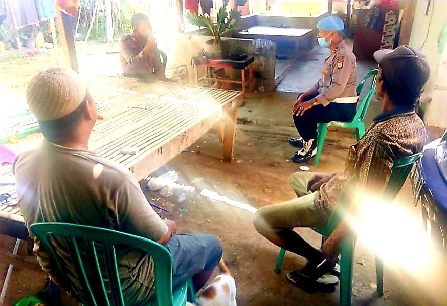 Kapolsek Barombong Polres Gowa AKP Rusdi Rahim Tata didampingi Kanit Provos Iptu Mannan melakukan kunjungan ke salah satu tokoh masyarakat sekaligus Ketua Kelompok Tani, Sallasa Dg Lawa di Lingkungan Caranggi, Benteng Somba Opu, Kecamatan Barombong, Kabupaten Gowa, Rabu (22/07/2020).