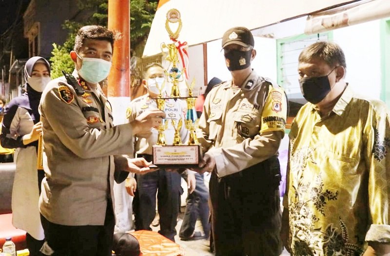 Pada kesempatan tersebut, Kapolres Pelabuhan Makassar AKBP Muhammad Kadarislam Kasim didampingi Kapolsek Wajo Kompol Amir Mahmud menyerahkan Piala, Piagam dan Dana Pembinaan kepada Bhabinkamtibmas dan perwakilan warga Kelurahan Melayu.