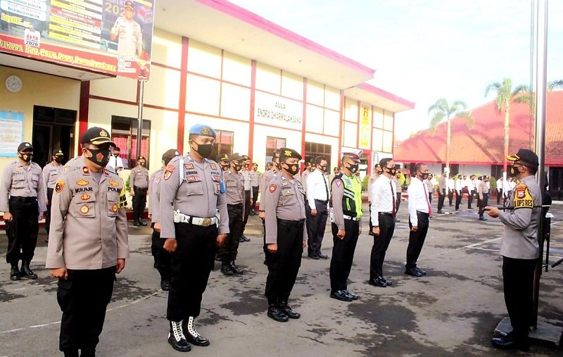 Kapolres Gowa AKBP Boy Samola saat memimpin pelaksanaan apel pagi pada Senin (03/08/2020) memberikan Reward kepada 6 (enam) operator Quick Wins.