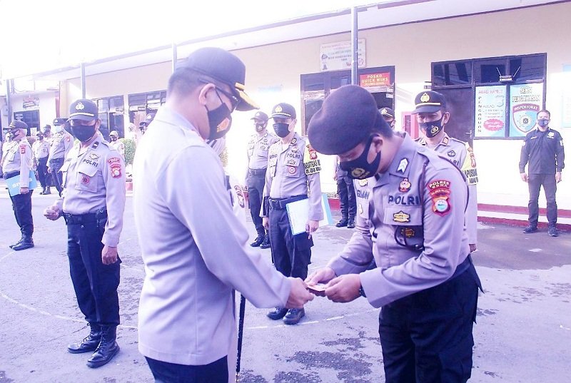 Sebanyak ratusan personel Polres Gowa yang lahir di bulan Maret, April, Mei, Juni, dan Juli melaksanakan upacara tradisi pemberian tali asih kepada perwakilan personel yang berulang tahun bersama di Polres Gowa, Senin (03/08/2020) pagi.