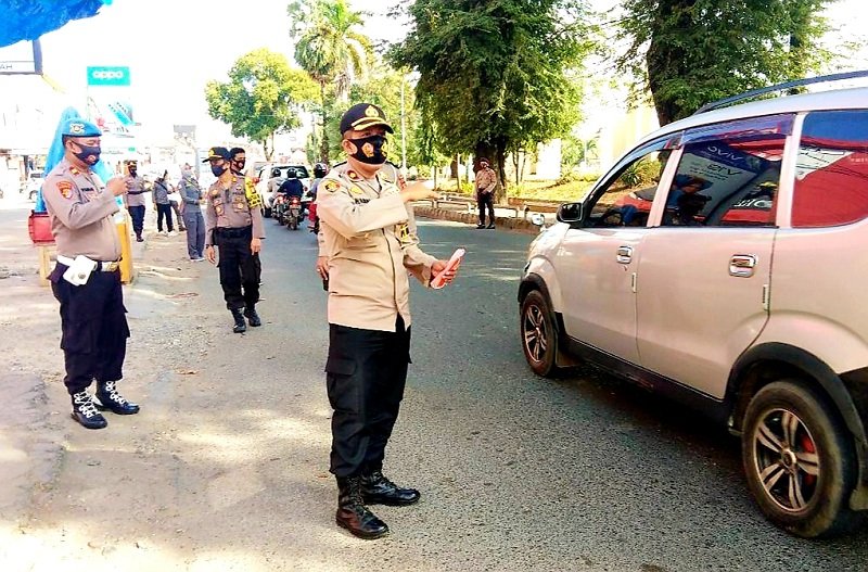 Dalam kegiatan tersebut, masyarakat yang melintas di Jalan KH. Wahid Hasyim yang tidak menggunakan masker pada saat berkendara diberhentikan personel sembari diberikan edukasi dan imbauan.