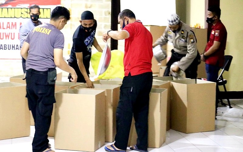Kapolres Pelabuhan Makassar AKBP Muhammad Kadarislam Kasim mengatakan, pemberian bantuan berupa sembako, pakaian layak pakai, air mineral dan alat masak serta alat makan seperti panci, wajan, piring, sendok, tabung gas 3 kg.