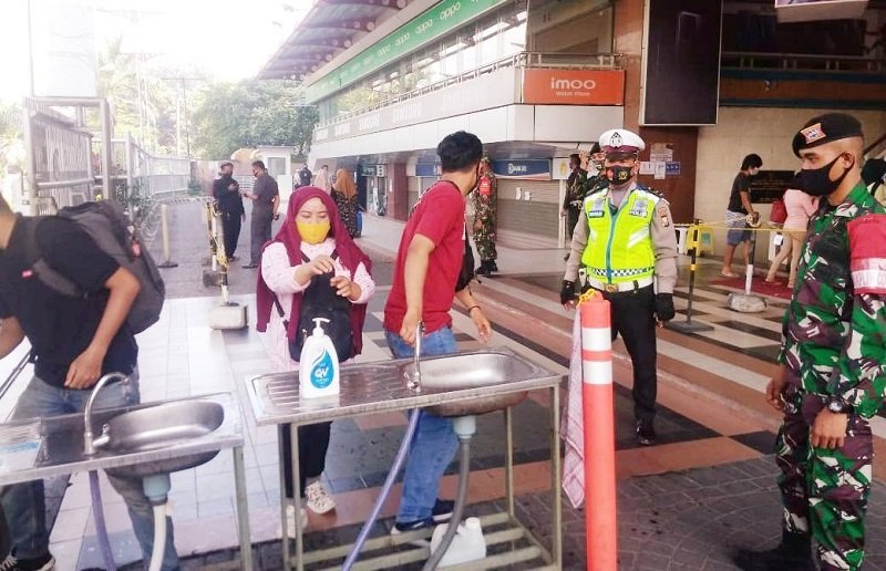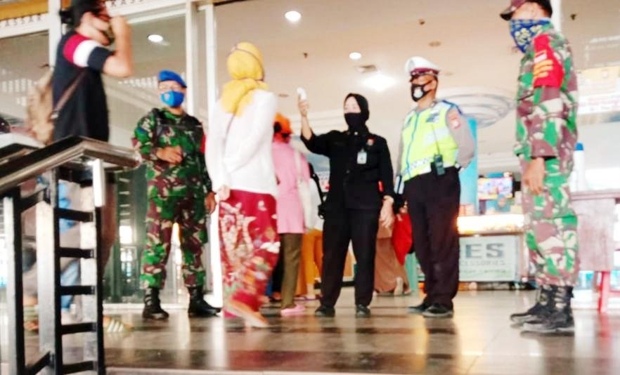 Personel TNI-Polri menyasar pusat keramaian seperti Mall, Pasar Tradisional, Tempat Pelelangan Ikan, Terminal dan Warkop, guna mengimbau masyarakat agar menerapkan protokol kesehatan di aktifitas sehari-hari.