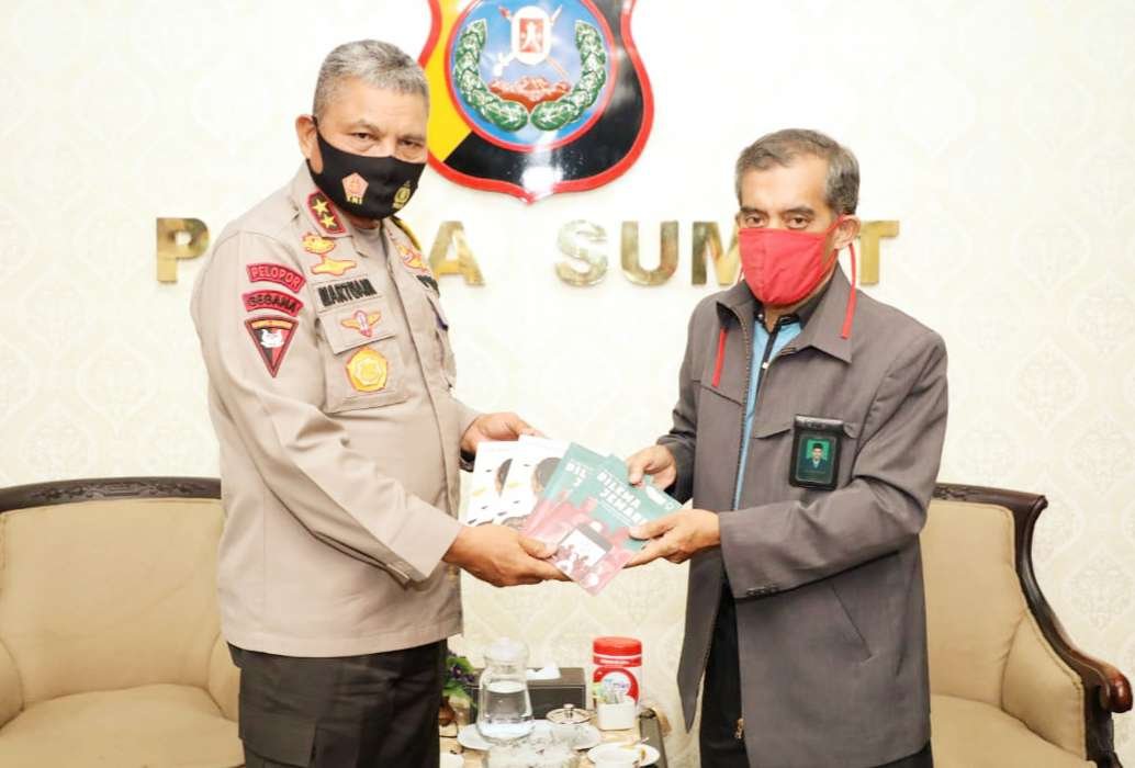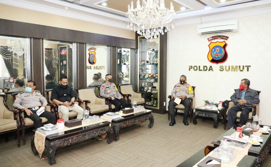 Kapolda Sumut Irjen Pol. Drs. Martuani Sormin, M.Si menerima kunjungan silaturahmi dan audiensi pengurus Forum Koordinasi Pencegahan Terorisme (FKPT) Sumut, Kamis (06/08/2020) di ruang perjamuan Mapolda Sumut.