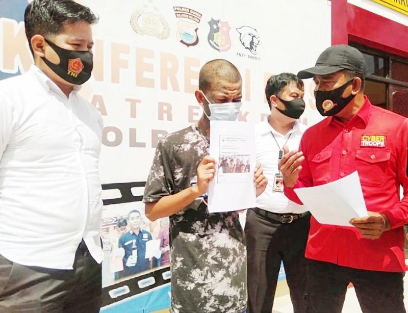 Dihadapan awak media, terduga pelaku memohon maaf kepada seluruh jajaran Kepolisian dan masyarakat atas postingan yang dilakukan dan berharap kejadian tersebut tidak kembali terjadi dan mengajak seluruh lapisan masyarakat untuk bijak dalam bermedia sosial.