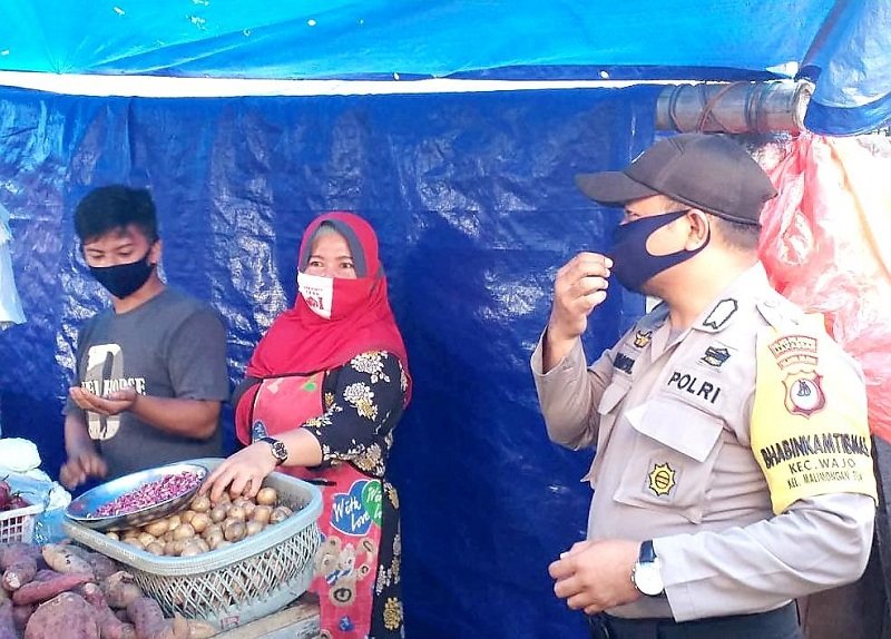 Di kesempatan tersebut, Bhabinkamtibmas Polres Pelabuhan Makassar Bripka Syamsul Alam yang bertugas di Kelurahan Malimongan Tua menyampaikan pesan kamtibmas agar selalu waspada di sekitar area pasar guna mengantisipasi terjadinya gangguan kamtibmas dan mencegah penyebaran Covid-19.