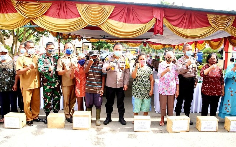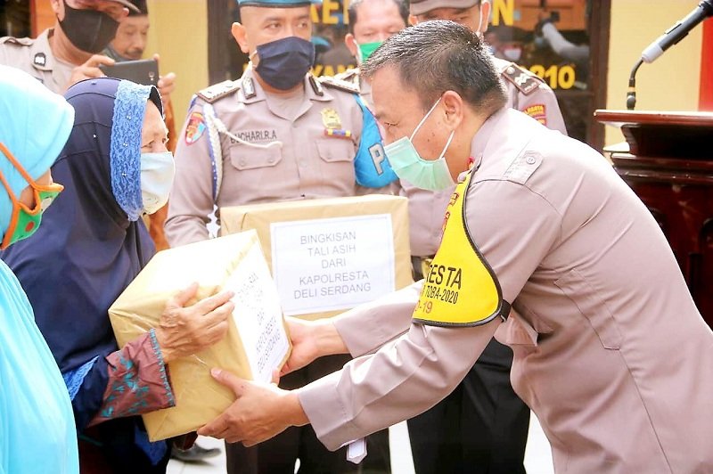 Dikesempatan itu, Kapolresta Deli Serdang Kombes Pol Yemi Mandagi, SIK juga memberikan bingkisan paket sembako kepada masyarakat terdampak Covid-19 dan kaum dhuafa di Kecamatan Galang, Kabupaten Deli Serdang. Kapolresta berharap dengan bantuan tersebut masyarakat dapat terbantu perekonomiannya akibat dampak Covid-19.