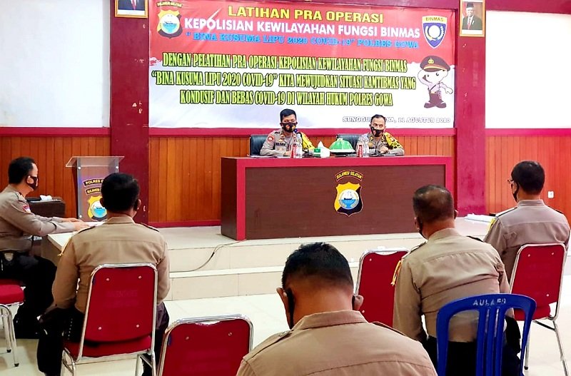 Bertempat di Aula Endra Dharmalaksana, pada Rabu (12/08/2020) pagi pukul 10.15 Wita, Polres Gowa menggelar kegiatan Latihan Pra Operasi (Lat Pra Ops) Kepolisian Bina Kusuma Lipu 2020 Covid-19.
