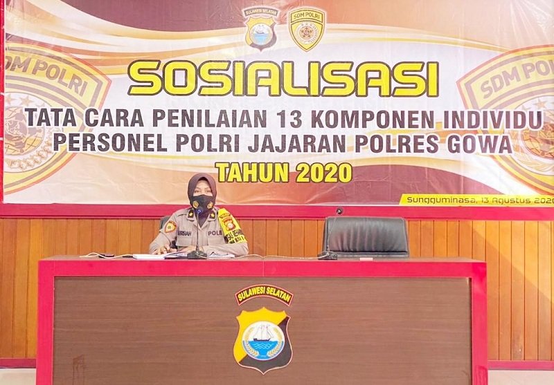 Bagsumda Polres Gowa menggelar kegiatan sosialisasi tata cara penilaian 13 komponen individu personel Polres Gowa dan jajaran bertempat di Aula Endra Dharmalaksana, Kamis (13/08/2020) pagi.