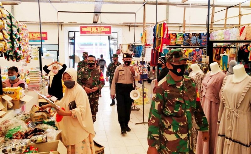 Mengantisipasi penyebaran virus Corona atau Covid-19, Bhabinkamtibmas Kelurahan Mataallo, Polsek Bajeng, Polres Gowawa, Aiptu H Nurbadri bersama personel Koramil 06 Bajeng memberikan imbauan kepada pedagang dan pengunjung di Pasar Sentral Limbung, Kelurahan Mataallo, Kecamatan Bajeng, Kabupaten Gowa, Minggu (16/08/2020) pagi.