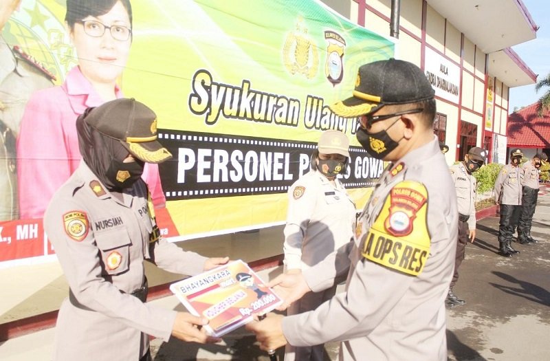 Sebanyak 74 personel yang lahir pada bulan April lalu baru diperingati hari ini Selasa (18/08/2020) pasca pelaksanaan apel pagi dan salah satu diantaranya adalah pejabat utama Polres Gowa Kompol Nursiah yang merupakan Kabag Sumda Polres Gowa.