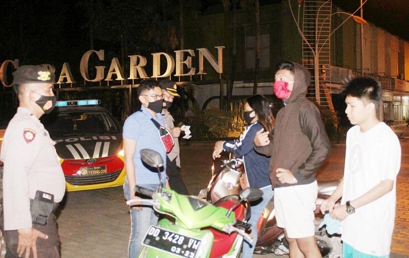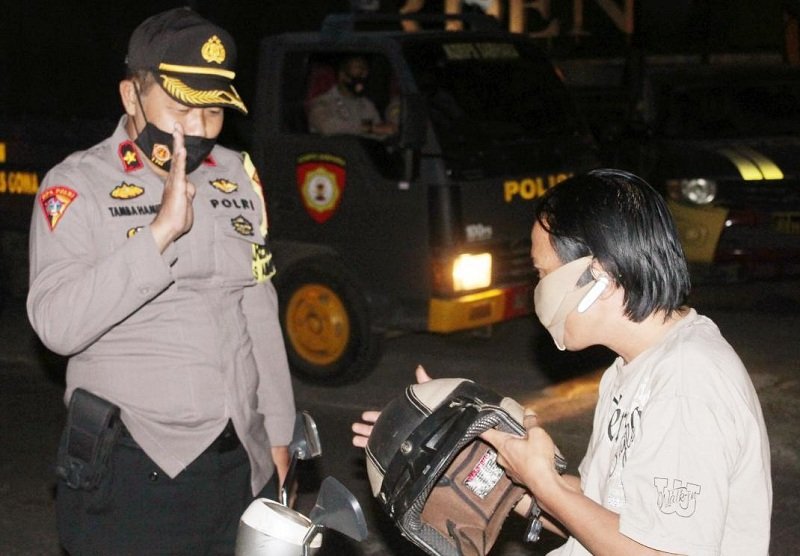 Personel Polres Gowa di malam dinas kedua menggelar kegiatan patroli malam hari dan sekaligus menyosialisasikan penggunaan masker ke warga di beberapa wilayah Kabupaten Gowa, Rabu (26/08/2020) sekitar pukul 21.15 Wita.