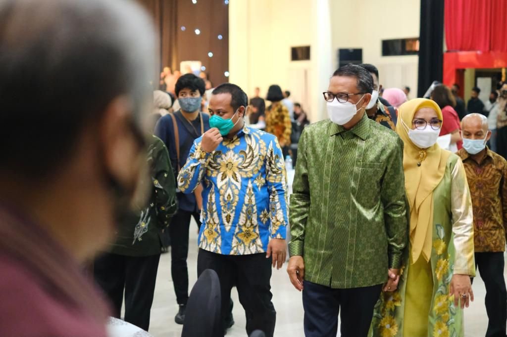 Wakil Gubernur Sulsel, Andi Sudirman Sulaiman, menghadiri malam kenal pamit Kapolda Sulsel Irjen Pol Mas Guntur Laupe oleh Irjen Pol Merdisyam, yang digelar di Aula Mappaoddang Mapolda Sulsel, Rabu (2/9/2020). Irjen Pol Mas Guntur Laupe kembali ke Jakarta. Ia dimutasi menjadi Widyaiswara Kepolisian Utama Tk I Sespim Lemdiklat Polri.