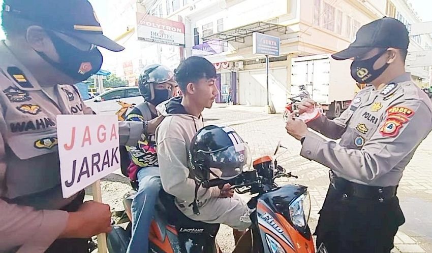 Ditengah pelaksanaan kegiatan edukasi dan sosialisasi ditemukan beberapa pengendara sepeda motor yang tidak disiplin dalam menjalankan protokol kesehatan khususnya dalam penggunaan masker.