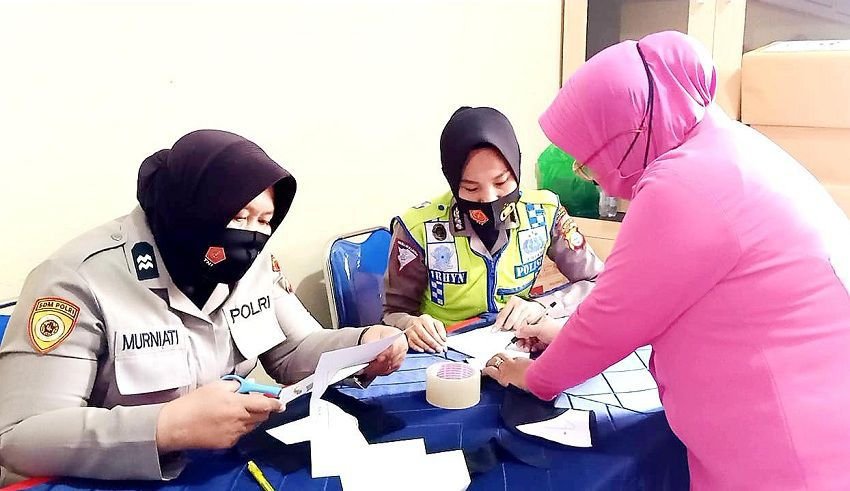 Dikumpulkannya para Polwan dan ASN tersebut untuk diberikan pelatihan cara membuat masker di tengah pandemi Covid-19 oleh pengurus Bhayangkari.