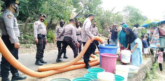 Setahun lalu Polres Gowa juga telah melakukan hal yang sama dengan menyambangi warga Dusun Bolangi, Desa Timbuseng, Kecamatan Pattallassang, Kabupaten Gowa lalu membagikan air kepada warga.