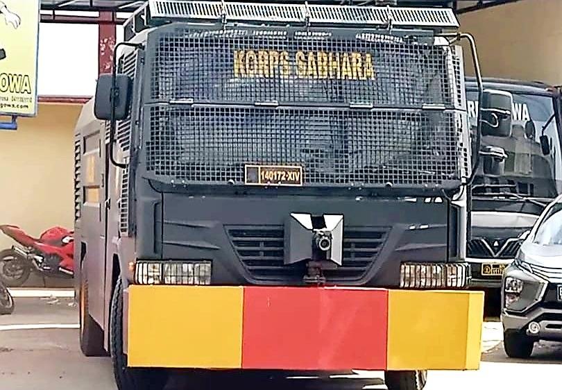 “Kendaraan AWC inilah yang kami gunakan untuk membagi-bagi air ke warga, dan alhamdulillah dengan kami fungsikan secara ganda sebanyak 8.000 liter air dapat kami bagikan kepada warga ditambah 1 unit mobil tangki yang turut membawa bantuan air bersih," ungkap Kapolres Gowa sambil menunjuk kendaraan Armor Water Cannon yang sementara menyuplai air kepada warga.