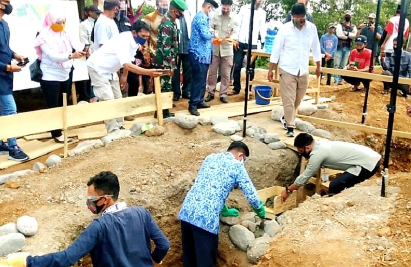 Bhabinkamtibmas Malino Polres Gowa Briptu Usman menghadiri acara Peletakan Batu Pertama Mesjid Hj. Nursiah di Kelurahan Malino, Kecamatan Tinggimoncong, Kabupaten Gowa yang dilakukan oleh Bupati Gowa Adnan Purichta Ichsan Yasin Limpo, SH, MH, Kamis (17/09/2020).