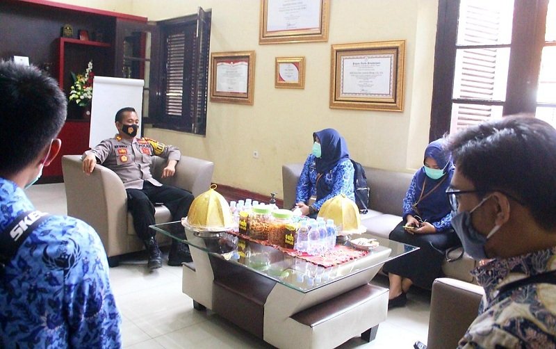 Tim yang dipimpin oleh Kepala Bagian TU Hj. Nurkalbu, SE, MM disambut hangat oleh Kapolres Gowa AKBP Boy FS Samola didampingi Wakapolres Gowa Kompol Muh. Fajri Mustafa di Gedung Merah Putih.