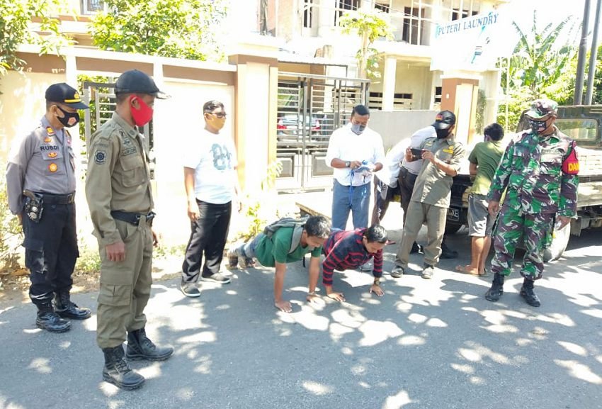 Tampak di lokasi, Tripika memberikan teguran bagi warga yang tidak patuhi protokol kesehatan. Demikian pula, Kapolsek Barombong juga memberikan sangsi fisik berupa push up, serta membagikan masker pada warganya, bahkan memakaikanya secara langsung.