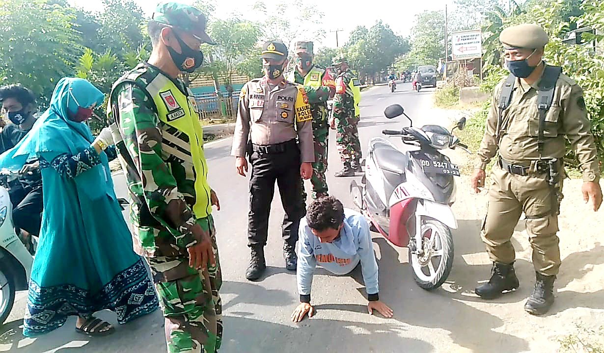 "Operasi Yustisi ini bertujuan untuk menertibkan para warga pengguna jalan baik roda dua maupun roda empat yang melintas di jalan raya agar menggunakan masker, dan warga yang tejaring tidak menggunakan masker diberikan peringatan serta tindakan disiplin berupa push-up," ungkap Ipda Haris.