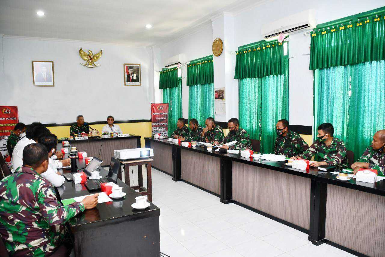Hadir dalam sosialisasi BPJS Ketenagakerjaan, Danrem 142/Tatag Brigjen TNI Firman Dahlan, S.I.P, Para Kasi, Kakumrem, Kapenrem, Dandenhubrem dan Waka Ajenrem 142. (*)