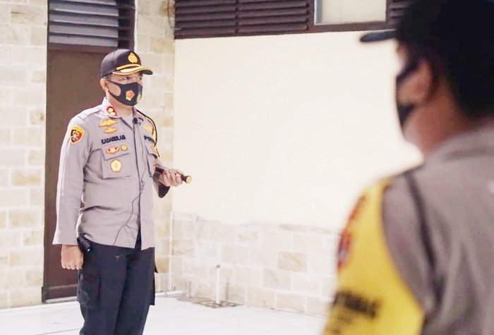 Secara simbolis, Kapolres Pelabuhan Makassar AKBP Kadarislam menyerahkan Maklumat Kapolri kepada para Bhabinkamtibmas di Aula Patri Tama Mapolres Pelabuhan Makassar, Selasa (22/09/2020).