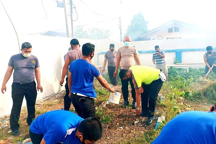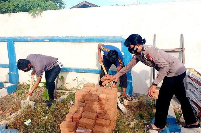 Guna menciptakan lingkungan bersih dan sehat, personel Sat Lantas Polres Gowa menggelar kegiatan korvey di area Taman Lalu Lintas Sekolah TK Kemala Bhayangkari Gowa, Jalan Poros Malino, Kecamatan Somba Opu, Kabupaten Gowa, Rabu (23/09/2020) sore sekitar pukul 16.00 Wita.