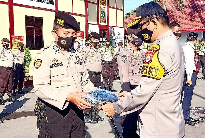 "Karena kita ketahui bersama bahwa anggota-anggota ini merupakan salah satu ujung tombak dalam mendukung Operasi Yustisi dan sangat rentan tertular virus," pungkas AKBP Boy FS Samola. (*rm)