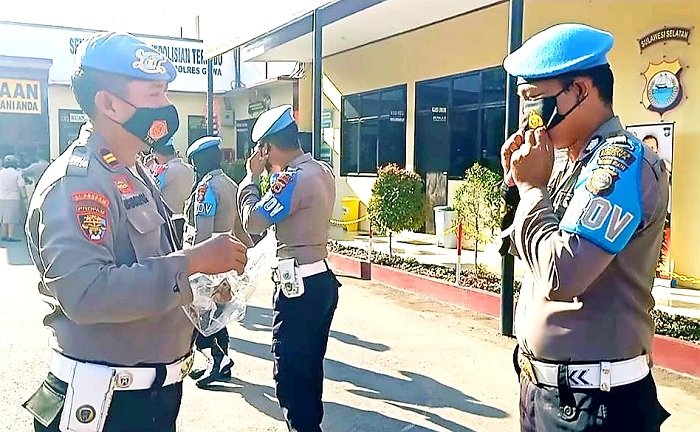 "Sebelum seluruh personel menggunakan masker yang telah dibagikan pagi tadi, maka anggota Provoost harus terlebih dahulu menggunakannya agar dapat menjadi teladan bagi seluruh anggota Polres Gowa," ungkap Iptu Isyamsah.
