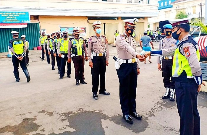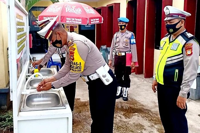 Tak hanya gencar memberikan edukasi kepatuhan protokol kesehatan anjuran pemerintah kepada masyarakat pengguna jalan, Sat Lantas Polres Gowa juga menerapkan hal tersebut kepada seluruh personelnya, Kamis (24/09/2020) pagi sekitar pukul 06.00 Wita. Kasat Lantas Polres Gowa AKP Mustari, SH sebelum memimpin apel pagi langsung memberikan penekanan kepada seluruh personelnya untuk patuhi protokol kesehatan saat berdinas maupun di luar dinas.