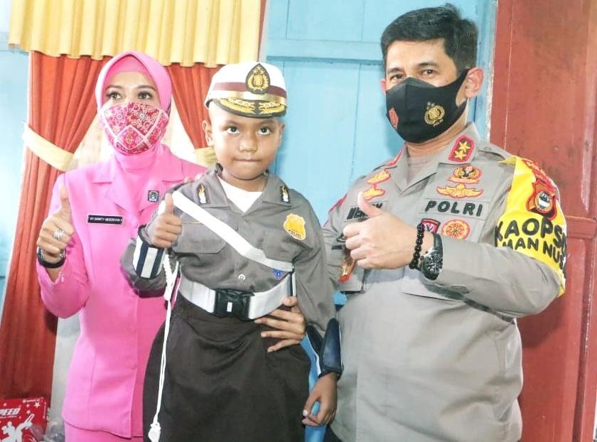 "Yah, apa yang kami berikan mungkin tidak seberapa. Tapi kami memberikan ini sebagai dukungan moril terhadap anak ini untuk sembuh," kata Kapolda.