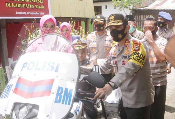 Kunjungan Kapolda Sulsel dan Ibu Ketua PD Bhayangkari di kota Sutera tersebut dalam rangka memperingati HKGB yang ke-68 dengan melaksanakan kegiatan bakti sosial di Kabupaten Wajo.