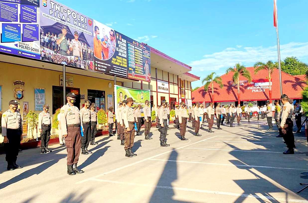 Apel pagi turut diikuti oleh segenap pejabat utama, seluruh personel, serta ASN Polres Gowa.