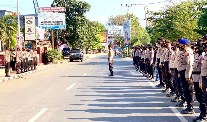 Polres Pelabuhan Makassar menggelar apel dalam rangka kesiapan Pengamanan Kampanye Pilkada Serentak 2020, Sabtu (26/09/2020).