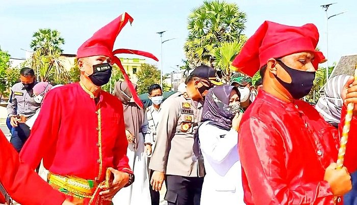 Saat tiba dilokasi pada Rabu (30/09/2020) pagi sekitar pukul 08.45 Wita, Pangdam XIV Hasanuddin dan rombongan disambut dengan tata cara adat kerajaan selanjutnya diterima langsung oleh Raja Gowa ke-38 Sombaya Ri Gowa Andi Kumala Idjo Daeng Sila Karaeng Lembang Parang Batara Gowa ke-3 beserta permaisuri.