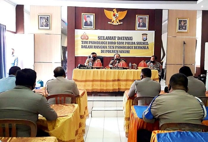 Kepolisian Resor (Polres) Sinjai menggelar tes psikologi kepada personilnya, bertempat di Aula Parama Satwika Mapolres Sinjai, Selasa (06/10/2020).