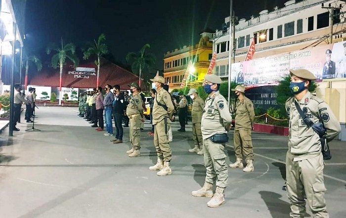 Tim gabungan Operasi Yustisi yang terdiri dari personel Kodim 1409, Polres Gowa bersama Satpol PP Kabupaten Gowa melaksanakan apel persiapan patroli, Selasa (06/10/2020) malam sekitar pukul 20.00 Wita.