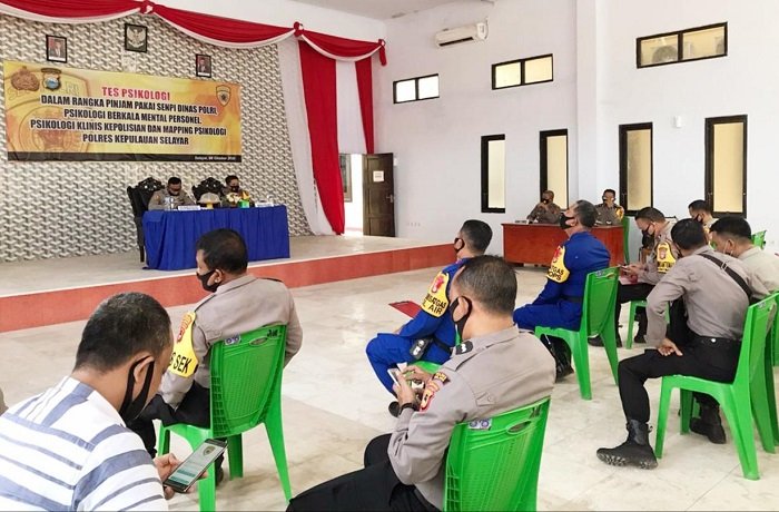Tim Psikologi Polda Sulsel memberikan sejumlah tes guna meping karakter mental dan kejiwaan personel Polres Kepulauan Selayar untuk menjadi bahan pertimbangan atau rekomendasi dalam pemberian izin pinjam pakai senjata api dinas.
