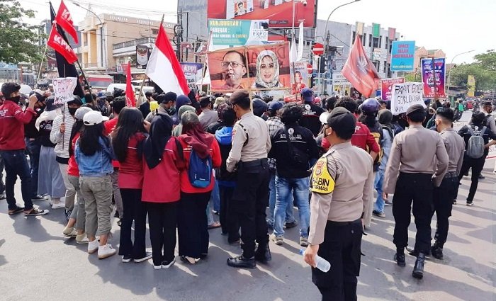 Melihat hal tersebut, personel yang ditugaskan maupun yang di BKO diperbatasan segera turun ke jalan untuk mengamankan jalannya aksi tersebut dan meminta kepada pendemo agar tidak menghalangi arus lalu lintas yang akan melintas di sepanjang jalan yang dilewati dengan tidak menutup jalan.