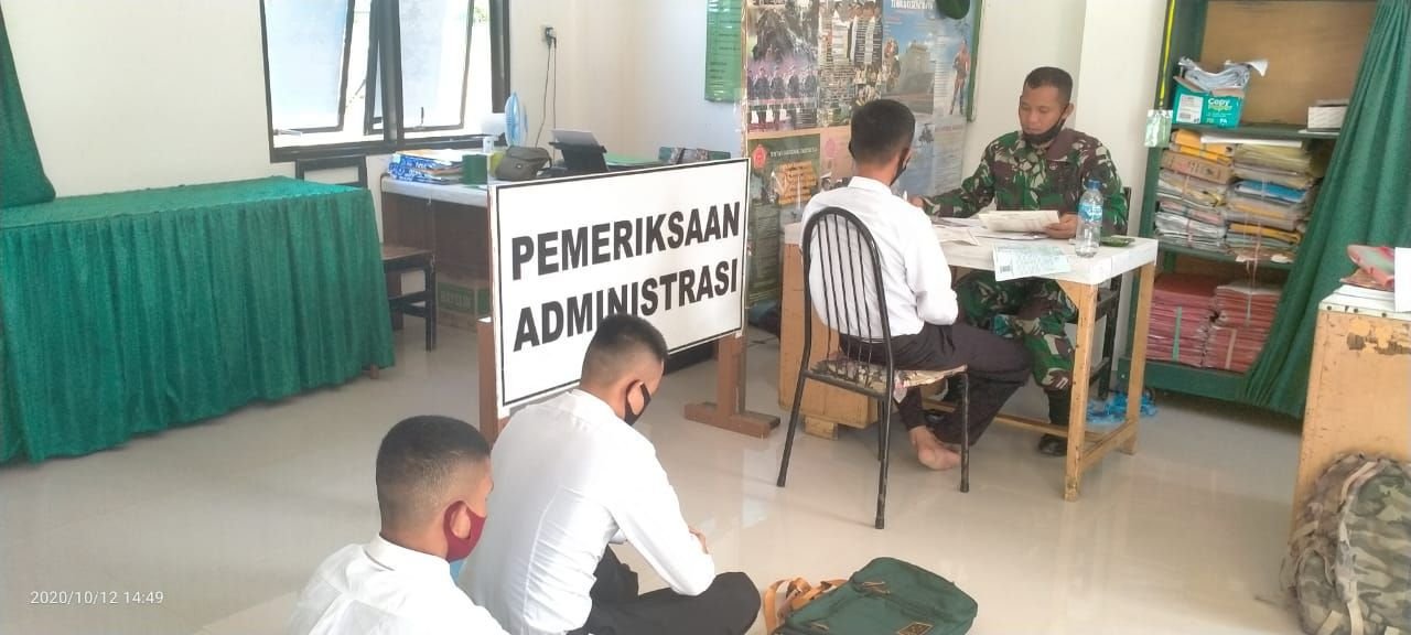 Seleksi tingkat Daerah Calon Tamtama PK TNI AD Sub. Panda Mamuju memasuki validasi atau daftar ulang di Kantor Ajenrem 142 Jl. Abd. Malik Pattana Endeng Mamuju, Sulawesi Barat (Sulbar), Senin (12/10/2020).