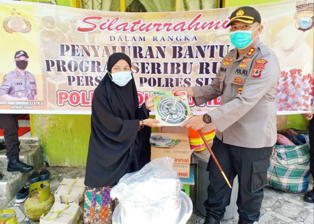 menyerahkan bantuan berupa perlengkapan alat dapur berbagai jenis sebagai wujud kepedulian sesama dan mudah-mudahan apa yang diberikan sedikit membantu dan meringankan kebutuhan hidup.